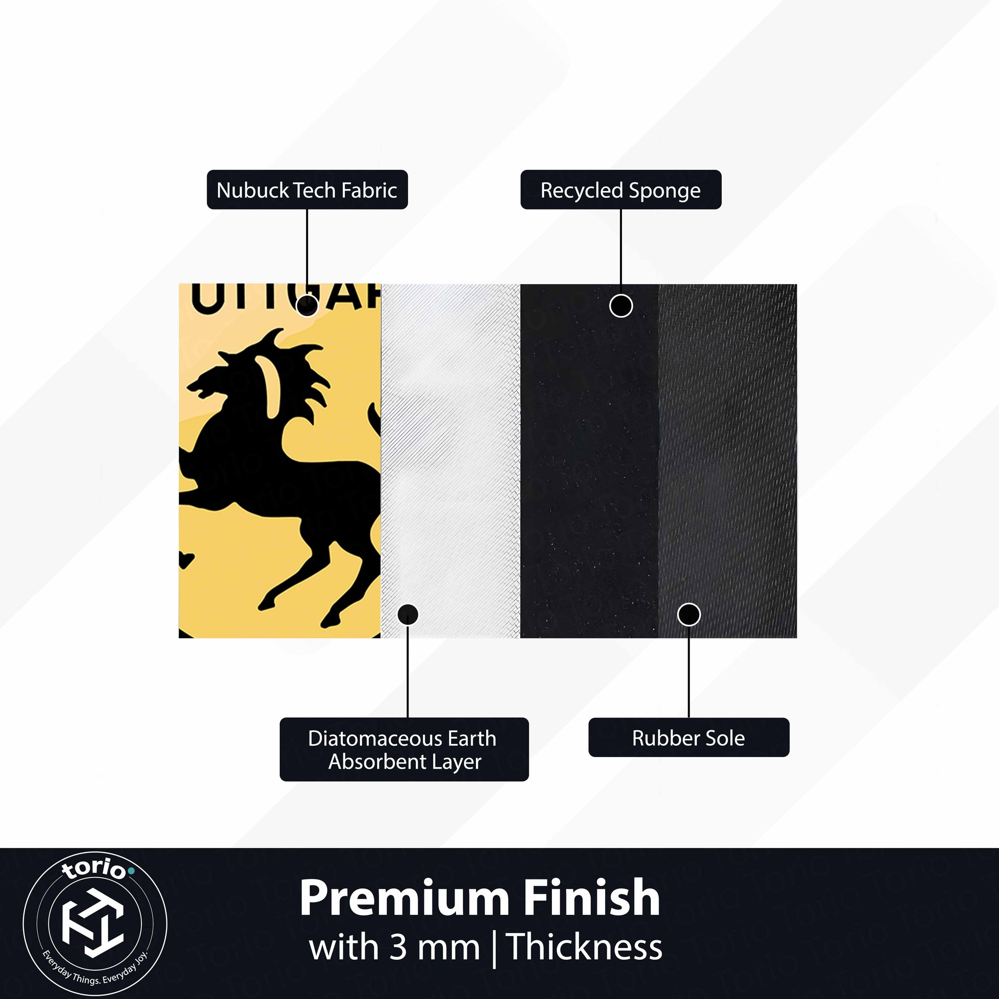 Built with a 3 mm slim, low-profile structure, this mat sits neatly on the floor without bulk, offering both visual impact and everyday practicality.