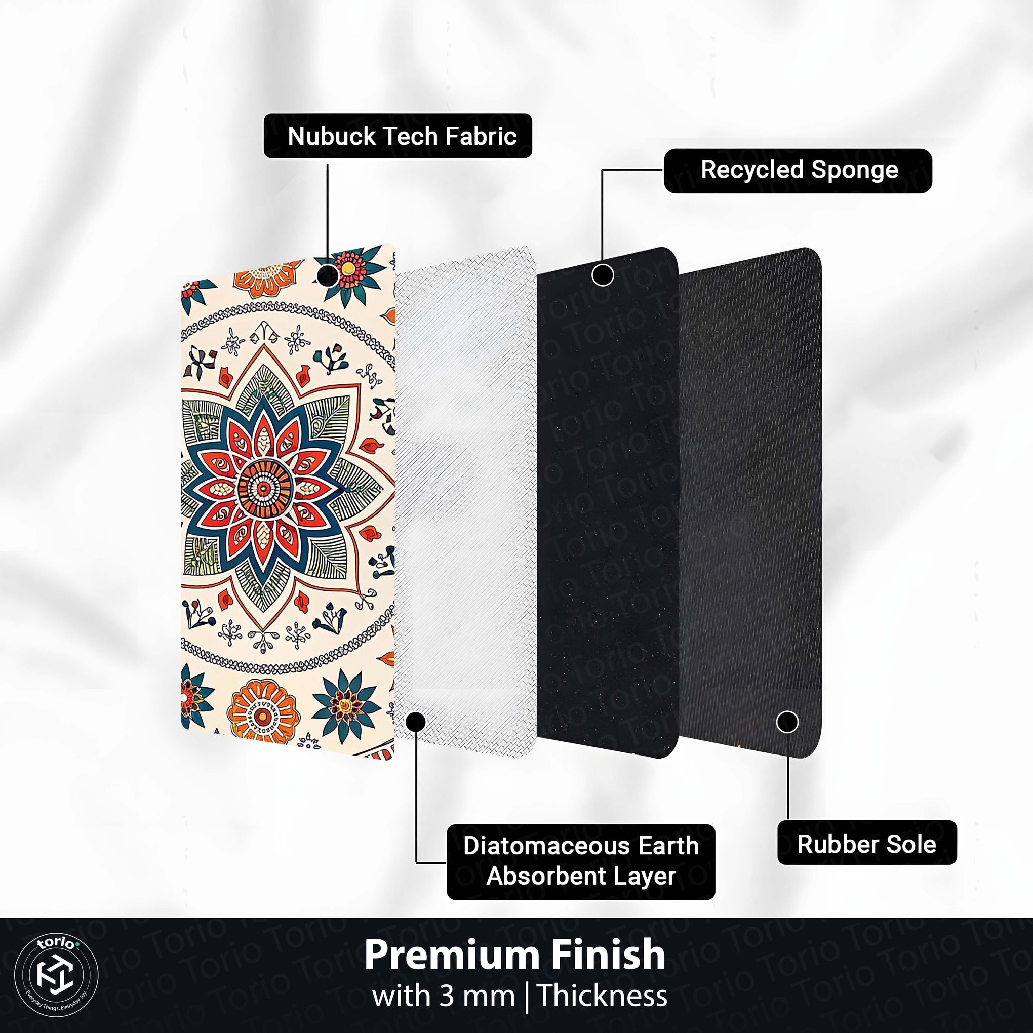 It is a 3 mm slim rubber floor mat, ideal for décor, grip, and everyday use.